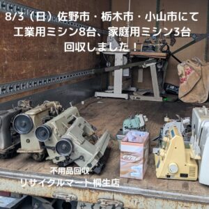 回収実績:佐野市、栃木市、小山市にて工業用ミシン8台、家庭用ミシン3台を回収しました!