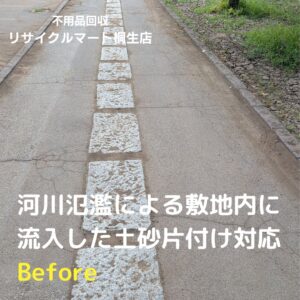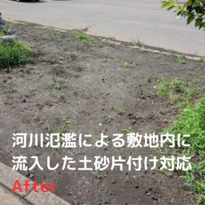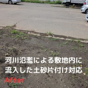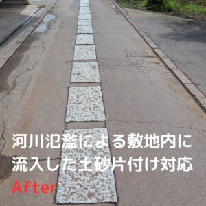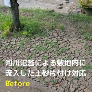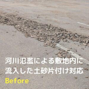 ゲリラ豪雨に伴う河川氾濫が発生!土砂・汚泥で汚れた敷地と駐車場をキレイにしました!