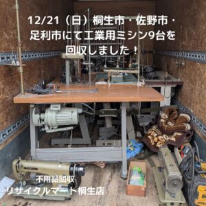 回収実績:桐生市・佐野市・足利市にて工業用ミシン9台を回収しました!