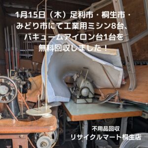 回収実績:足利市・桐生市・みどり市で工業用ミシン8台、バキュームアイロン台1台を回収しました!