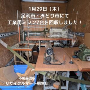 回収実績:足利市・みどり市にて工業用ミシン7台を回収しました!